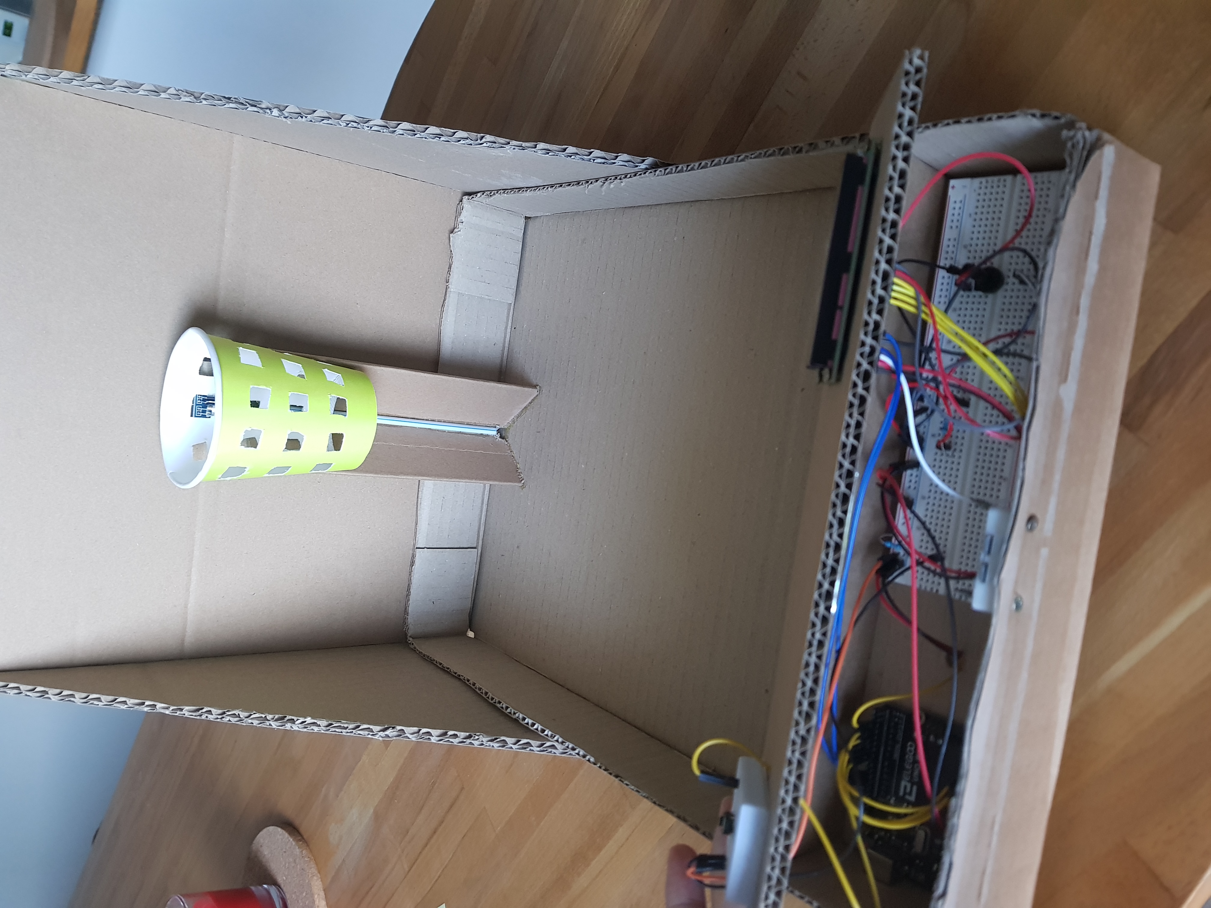 # Arduino-Basket Projet d'IOT - Arduino basket ## Auteur(s) | Nom | Prénom | login | |----------|----------|----------| | Dulong | Valentin | dv152069 | | Houchard | Julien | hj160532 | ## Travail à réaliser ## Matériel Arduino Capteur Infrarouge (IR) Bouton pressoir Ecran LCD (16*2) Potentiomètre Résistance * 2 Cables Breadbord Breadbord mini Cable USB Cartons (ou autre matière) Grand gobelet en carton (ou autre matière) Balles de ping pong (ou balles similaires) ## Montage ![Figure 1](images/arduinoschema_bb.png) ## Visuel | Boite ouverte | Boite fermée | |-----------------------------------------|--------------------------------------| | | | ## Utilisation Réaliser le montage arduino Téleverser arduino_basket.io sur l'arduino Installer docker et docker-compose si nécessaire docker-compose up --build Se rendre sur la page https://0.0.0.0:8080/
